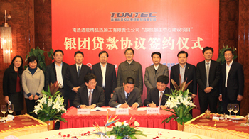 11月7日下午,通能精機“熱加工中心建設(shè)項目”銀團貸款簽約儀式隆重舉行,通能精機項目一舉簽定融資4.4億元授信協(xié)議。市財政局局長陳照東、國資委主任李桂順、南通產(chǎn)控集團董事長杜永朝、總經(jīng)理陸強新以及工商銀行南通分行劉小全行長、上海浦發(fā)南通分行李建宏行長、南通科技總經(jīng)理凌衛(wèi)國等出席簽約儀式。 通能精機建設(shè)項目是南通科技重點建設(shè)項目之一,總投資10億元,建成后將成為蘇北地區(qū)乃至華東地區(qū)最大的熱加工中心。此次銀團貸款協(xié)議的簽訂,將為建設(shè)中的通能精機提供了強有力的資金保證,創(chuàng)下了南通科技單筆最大的授信紀(jì)錄。 簽約儀式上,通能精機總經(jīng)理武立新與銀行代表簽訂貸款協(xié)議,南通科技凌衛(wèi)國總經(jīng)理與銀行代表簽訂擔(dān)保協(xié)議。工商銀行、浦發(fā)銀行的兩位行長講話預(yù)祝簽約儀式取得成功,認(rèn)為,南通科技具有廣闊發(fā)展前景,銀行將不遺余力支持企業(yè)發(fā)展。南通科技總經(jīng)理凌衛(wèi)國表示將全力以赴做好項目建設(shè),力爭早投產(chǎn)、早獲益。 |