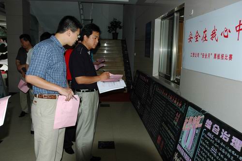 南通工貿公司在安全月活動中,組織各集約化管理片區企業舉辦黑板報比賽。比賽以“綜合治理、保障平安”為宗旨,體現了“安全在我心中”和“以人為本、關愛生命”的崇高主題,具有內容健康、創意新穎的特點,頗受參觀者好評。