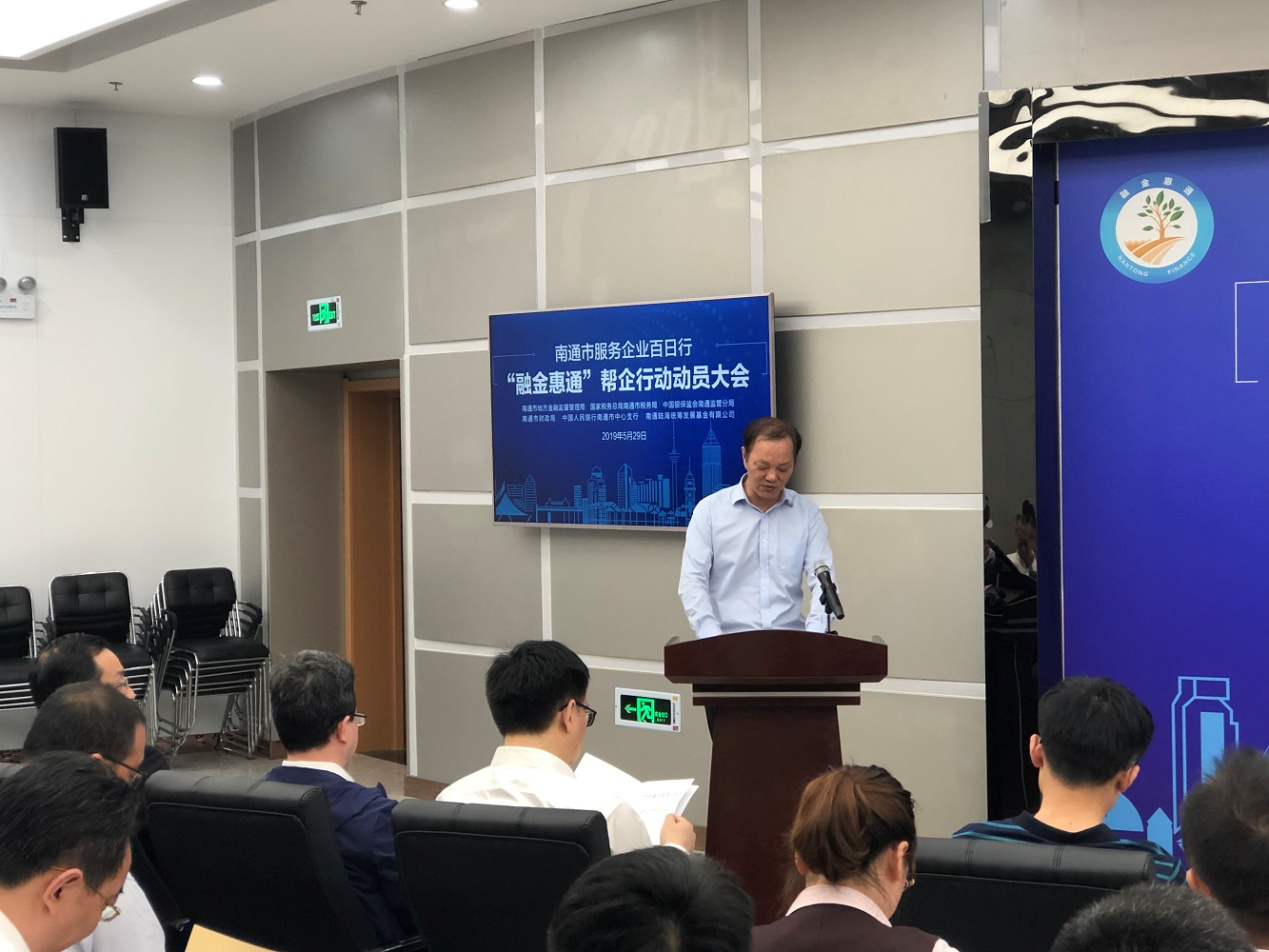 5月29日上午,南通市地方金融監督管理局在市中小企業金融服務中心路演大廳召開“融金惠通”幫企行動動員大會。大會由南通市地方金融監督管理局局長張乃華主持,南通市市委常委、常務副市長單曉鳴出席大會并致辭,南通產業控股集團有限公司副董事長顧建國作為南通陸海統籌發展基金代表及“融金惠通”幫企行動市直二分隊隊長進行了表態發言。