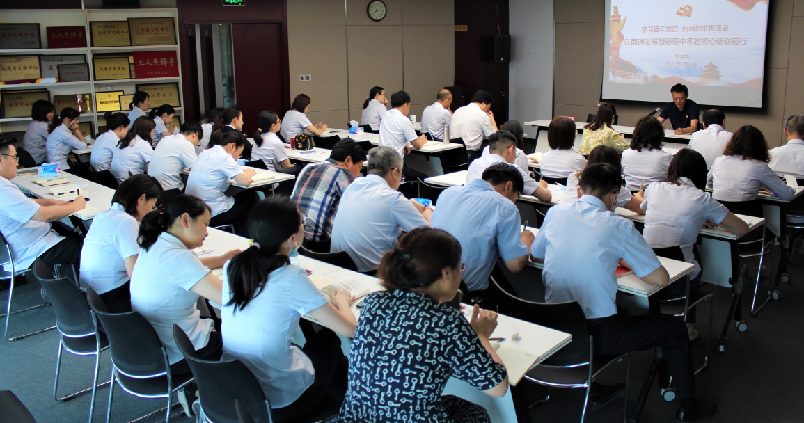 7月29日下午,南通眾和融資擔保集團有限公司黨支部開展三季度黨史學習教育專題黨課,邀請產控集團黨委委員、副總經理陳云光同志為支部全體黨員、入黨積極分子、中層以上干部及子公司領導班子成員講授黨課。