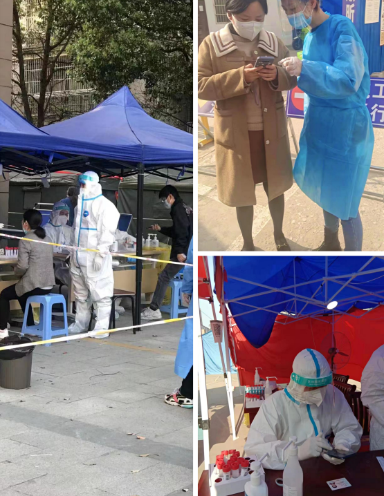 “您好,請配合我們測量體溫”、“請大家帶好口罩”、“請提前準備好身份證”······他們在現場協助查驗雙碼、測量體溫、維護現場秩序、對老人進行掃碼幫助等,大慶社區、大南社區、濠東社區等均可見揚子碳素志愿者們忙碌的身影。