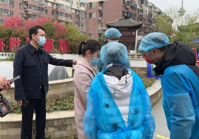 4月1日,抗疫突擊隊的戰線擴展到鐵心橋小游園和人民路布丁酒店2個檢測點;4月5-6日,斗志高昂的抗疫突擊隊志愿者們已鋪開到鐵心橋小游園和人民路布丁酒店、老規劃局3個檢測點; 4月7-8日,志愿工作點調整為布丁酒店和躍龍橋小學2個檢測點;4月9日,按照管控要求,全員就地轉為志愿者,支援各社區防疫工作。 在此期間,我被志愿組成員的表現深深“?”到了:在小游園檢測點,我看到了財務部平時不愛說話的王淑文拿著指示牌,嗓子已經喊得沙啞;我看到了資產部的韓璐、辦公室的仲錢宇、項目部的江威呈在寒風中維持秩序、查看行程碼和健康碼。 在布丁酒店檢測點,我看到了我們安全部程彧在內的數位突擊隊員脫下“大白”時身上的汗水;我看到了在其他工作人員身體突發不適時,趕來頂班至深夜的資產部孫強。
