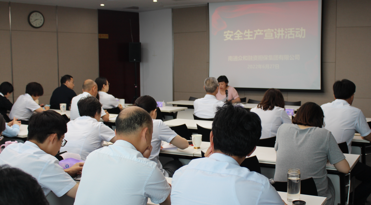 今年6月是全國第21個“安全生產(chǎn)月”,眾和擔保嚴格落實“安全生產(chǎn)月”工作要求,結合公司實際,細化完善活動方案,圍繞“遵守安全生產(chǎn)法,當好第一責任人”活動主題,扎實開展系列宣貫活動,推動安全生產(chǎn)各項工作走深走實。 6月27日下午,眾和擔保召開“安全生產(chǎn)月”宣講活動,公司全體員工及子公司領導班子成員共計40余人參加活動。會上,黨支部書記李瑾傳達了產(chǎn)控集團“安全生產(chǎn)月”專題工作會議精神,提出“提高思想認識、落實制度規(guī)定、切實擔起責任、實現(xiàn)兩個確保”的工作要求。