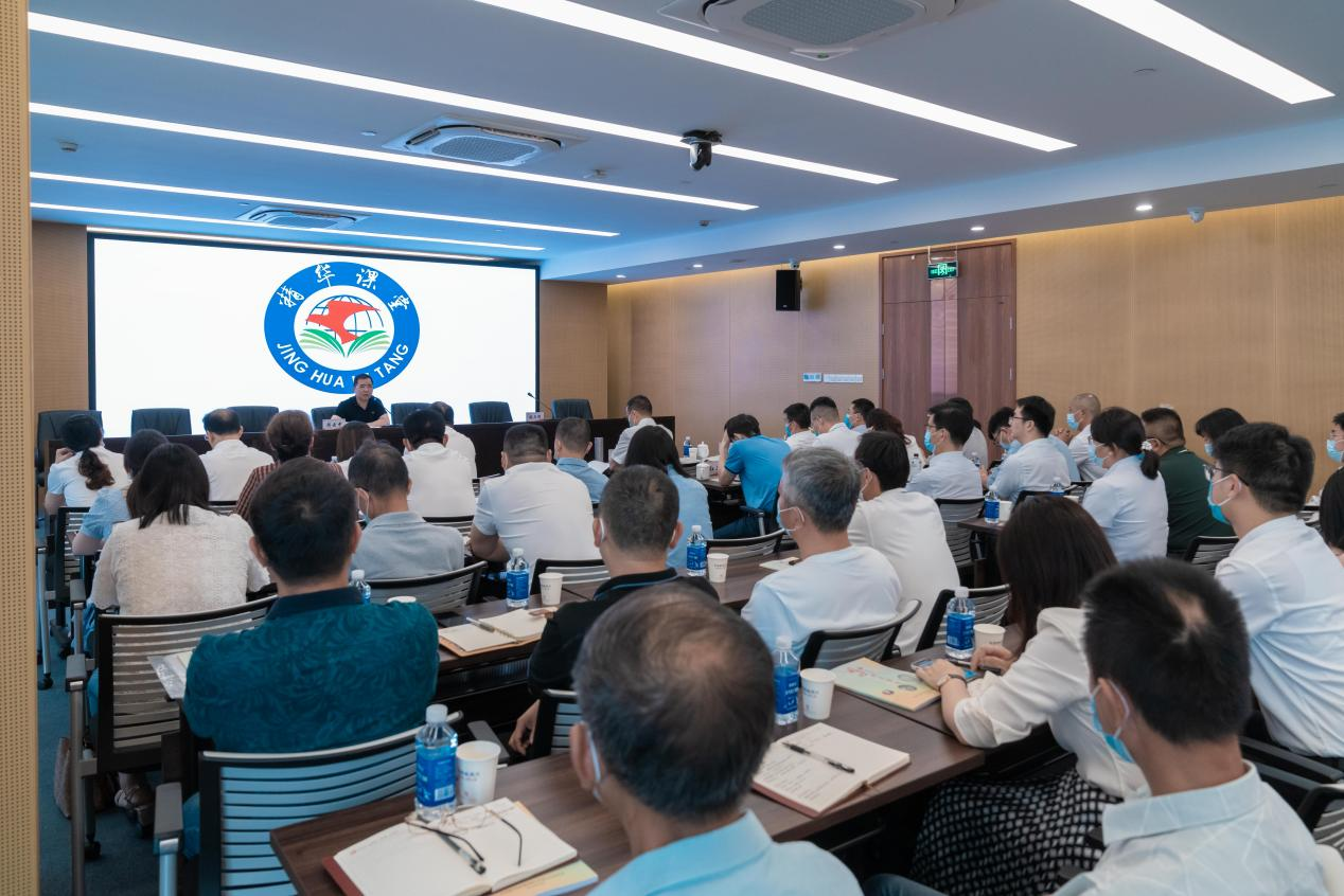中醫(yī)藥蘊含著豐富的人文科學和哲學思想,是我們中華民族的瑰寶,更是優(yōu)秀傳統(tǒng)文化的精神所在。為進一步弘揚傳統(tǒng)文化,加強職工對中醫(yī)藥文化理解和認知,強化中醫(yī)藥文化價值認同感,精華制藥集團在七一之際,舉辦了一期“精華課堂”,邀請了公司總經(jīng)理周云中給全體黨員、主管及以上人員開展一次中醫(yī)藥健康文化知識講座。講座由黨委副書記錢衛(wèi)峰主持。