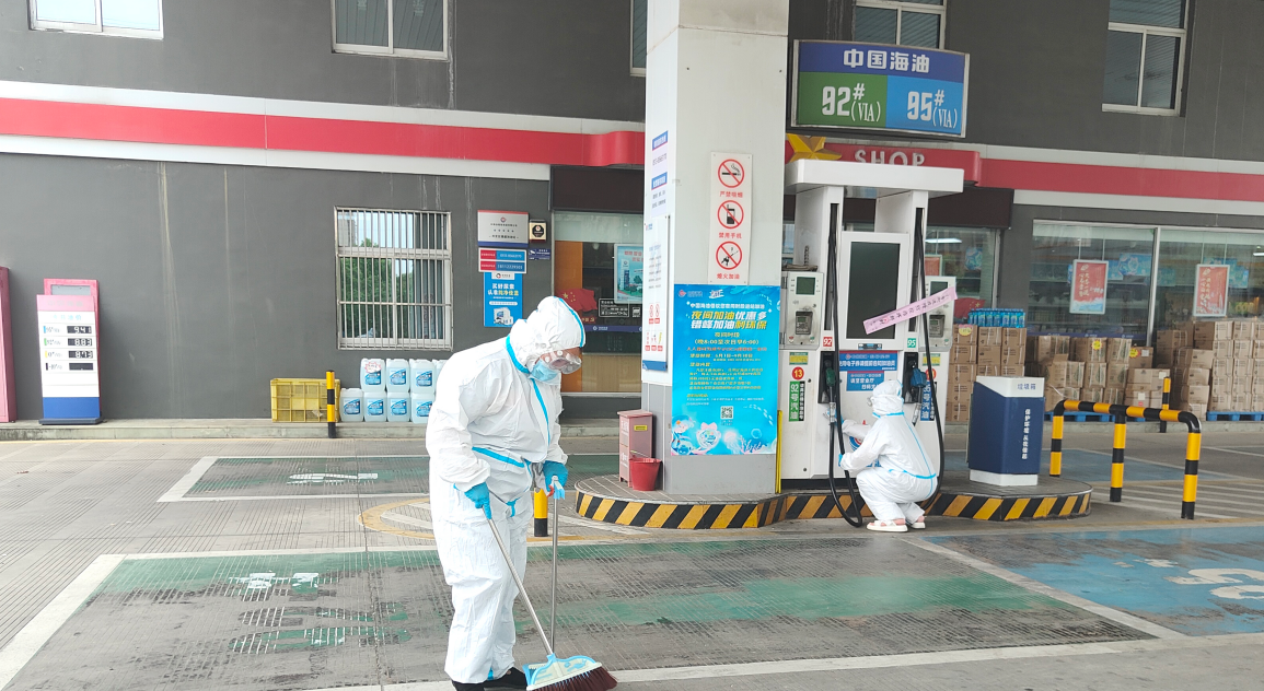 接到加油站上報后,南通公司高度重視,立即啟動疫情防控應急預案。將相關情況及時上報了華東HSE部和零管部,并對南通銷售、南通港口當日下午2:00至5:00去站加油站的員工進行了徹底排查,對防疫工作進行了再部署、再落實。要求各站時刻緊繃公司常態化疫情防控之弦,堅決克服麻痹思想、厭戰情緒、僥幸心理、松勁心態。要嚴格執行公司各項防疫要求,全體員工須正確佩戴口罩上崗,同時提醒顧客佩戴口罩進入營業廳,做好顧客健康稽查工作。要做好加油站場所消殺工作,并做好臺賬記錄。零管部臨時負責人季慶杰和小額配送崗徐冬祥主動請纓,積極配合街道綜合執法局進行夜間值守,在南通地區最高溫36℃的情況下,在狹小的車內度過了難忘的一夜。 通盛站是南通公司標桿站,更是萬噸站,停業一天,對公司的銷量利潤都有不小的影響。疫情防控小組成員鮑楊做好后勤保障工作,積極與市防疫指揮中心協調、溝通。7月9日中午,南通公司接到通知,通盛站可在自行全面消殺后,恢復營業,大家都松了一口氣。接到通知后,非油崗魏菁菁帶領通盛站值守的員工開始對通盛站進行了兩個小時的全面消殺。街道綜合執法局全程監督消殺工作,消殺完成后,執法局拆除了油站臨時封控警戒線并組織撤離。