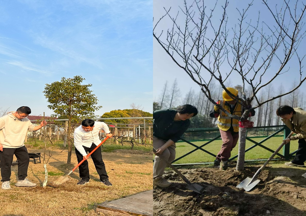 活動開始,公司總經理鄭偉進行致辭,表示作為環保企業的每一名員工要有保護生態環境的使命感和責任感。隨后公司一行步行抵達植樹地點。植樹現場,大家分工有序、干勁十足,有的揮鍬鏟土,有的扶樹苗,呈現出一派熱火朝天的勞動景象。