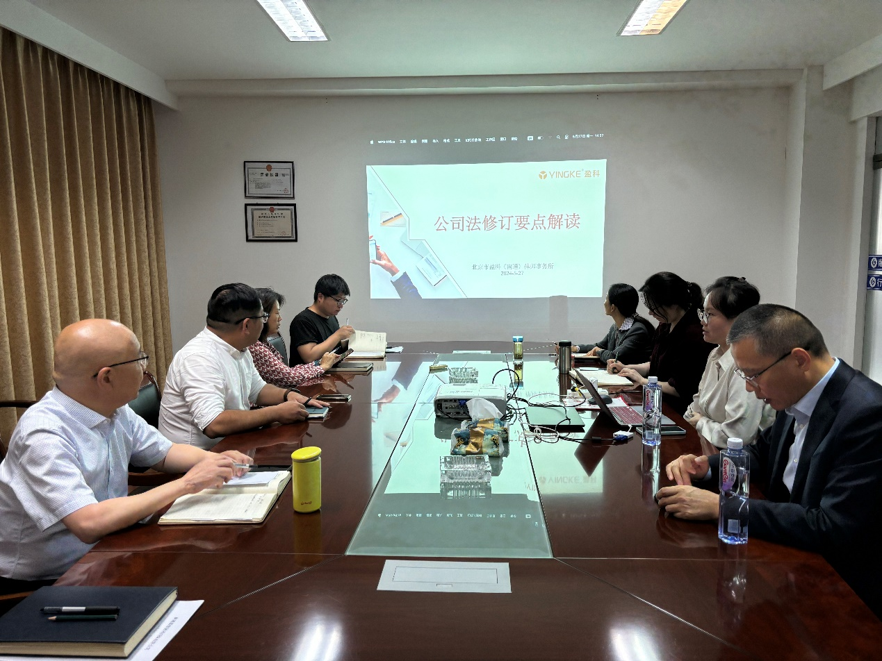 為進一步提高依法治企能力,增強公司員工的法律意識,精準把握和主動適應新《公司法》,推進公司合規經營管理工作邁上新臺階,公司于5月27日下午組織開展了《公司法修訂要點解讀》培訓活動,公司全體員工參加了培訓活動。 公司法律顧問單位盈科律師事務所汪秋語律師為主講人,從公司法的修訂歷程、總則部分修訂要點、有限責任公司的修訂內容等幾個方面進行了詳細講解,并就大家現場提出的問題進行了深入的交流。 通過此次培訓活動,促進了公司干部職工對新《公司法》的深入理解,加深了員工對公司治理及管理要求的理解和認識,為今后工作中更好的防范法律風險,保障公司利益,推動公司穩步發展起到了重要的作用。